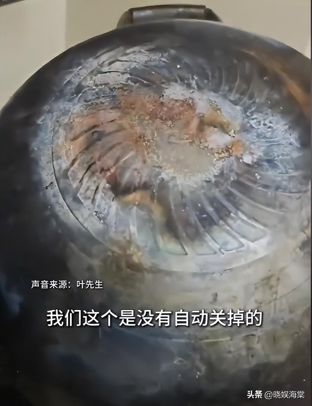 这下叶先生终于是意识到了,情况不对,赶忙撒腿往厨房里跑,结果不出所料,因为离开时没有关燃气灶,锅已经被烧糊掉渣了。