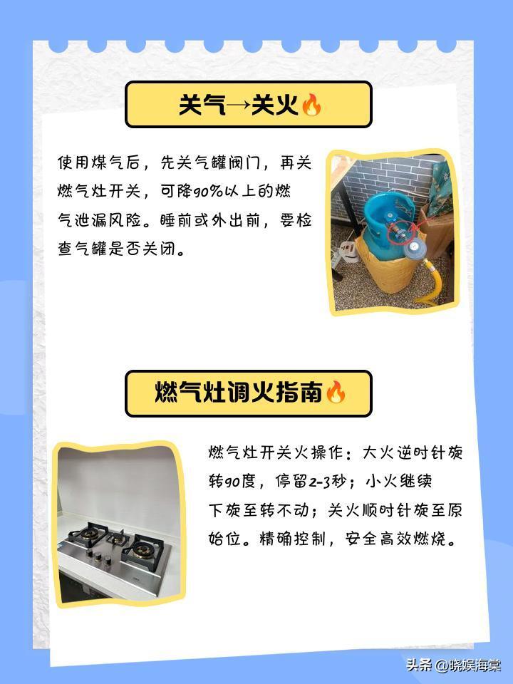定期检查燃气关岛,三个月检查一次燃气软管,每年请专业人员检查燃具,像是锅、燃气表这些东西要定期更换,不要因为其外观看上去还好就不更换。