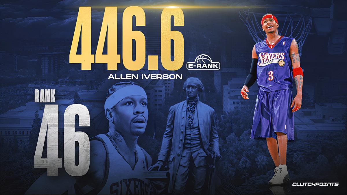即使不考虑他对篮球文化的影响,艾弗森仍然跻身前50名。他没有获得总冠军,他的场均数据也不是特别出色,他的巅峰表现也并不惊艳。但他在得分方面的韧性和创造力,以及他对整个篮球运动的深远影响,让他获得了四次得分王和一次MVP。艾弗森也曾无限接近总冠军,但最终被沙克和科比的洛杉矶湖人队击败。